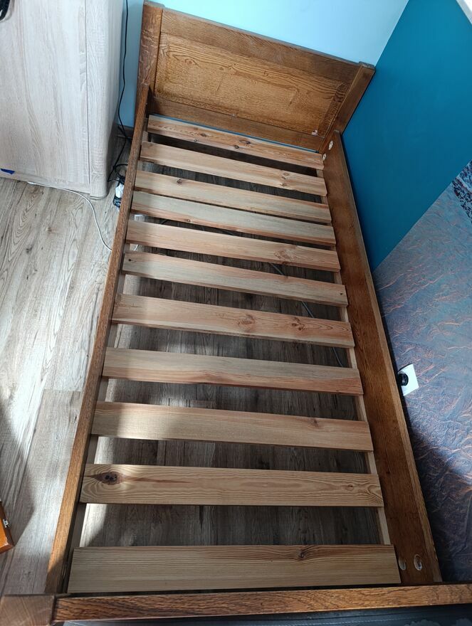 Sprzedam ramę łóżka dębową ze stelażem. Stan bardzo dobry. Materac gratis. Możliwość transportu za dopłatą.Sprawdź zainteresowanie tym ogłoszeniem
